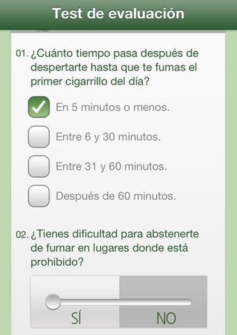 Antes de empezar, Respirapp te hará registrarte y responder a unas preguntas para adaptarse a tu nivel de dependencia o abuso del tabaco. Así los plazos de tiempo serán más acordes a tu necesidad.